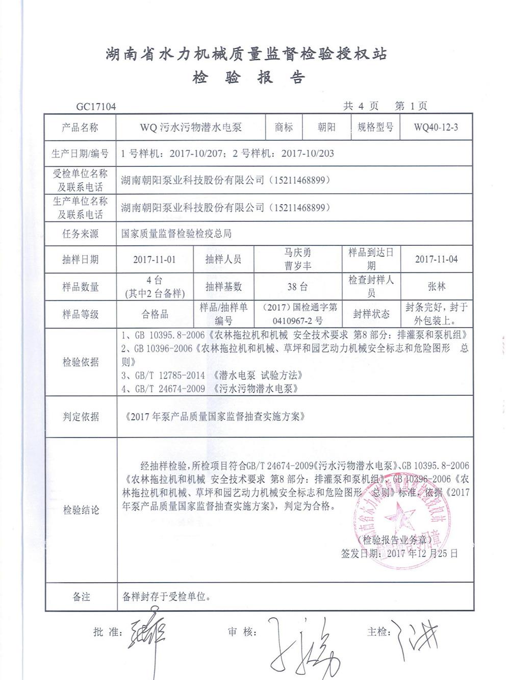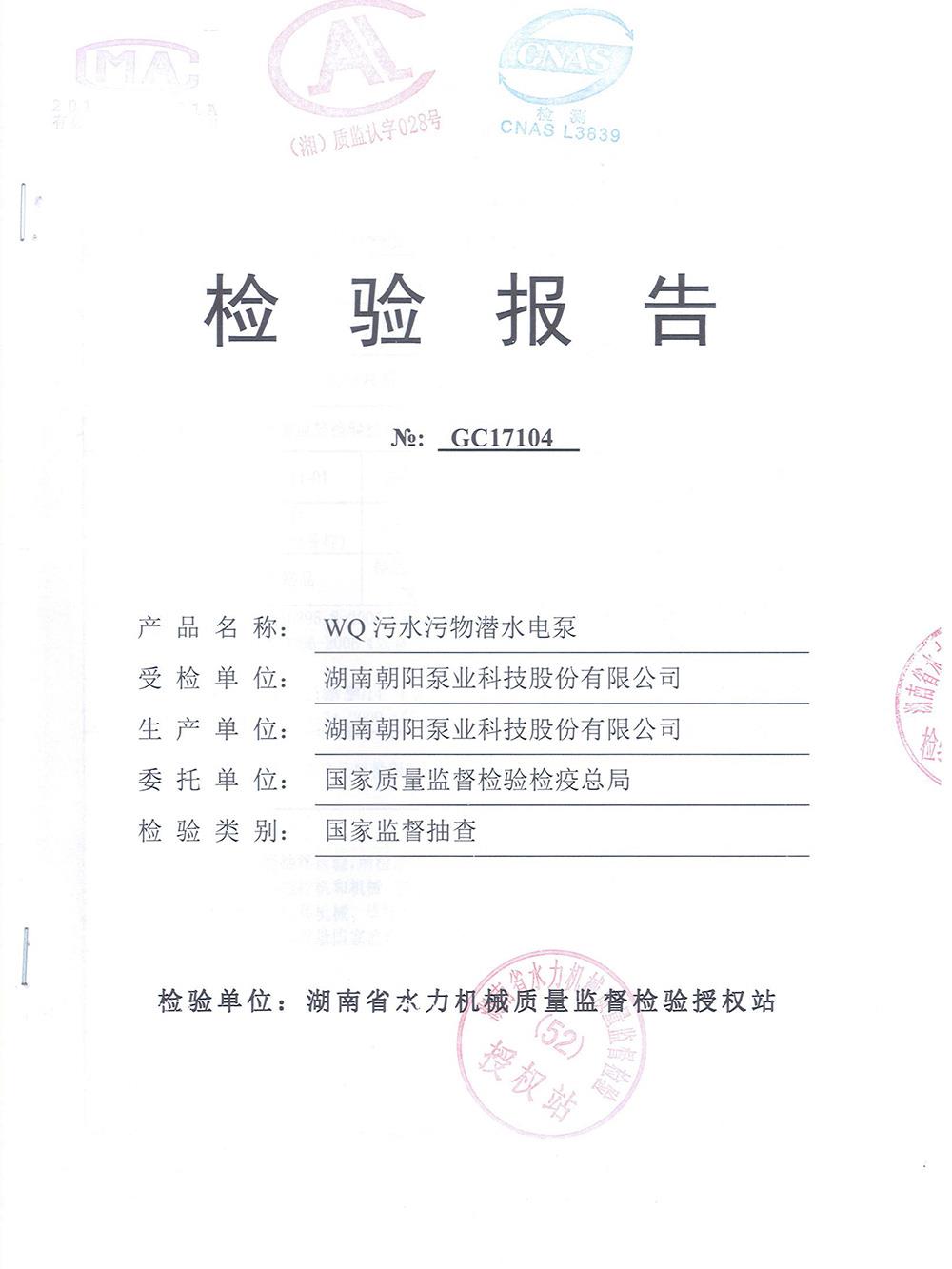 WQ污水污物潛水電泵檢測報(bào)告